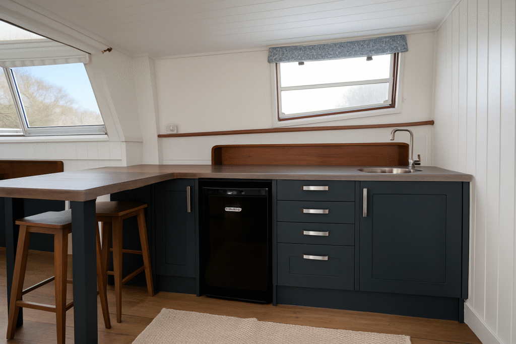 Fat Panda is a private, self-contained Dutch barge offering practical, affordable lodging for tradespeople and shift workers – a quiet space with kitchen facilities, free parking and everything you need to reset between shifts.